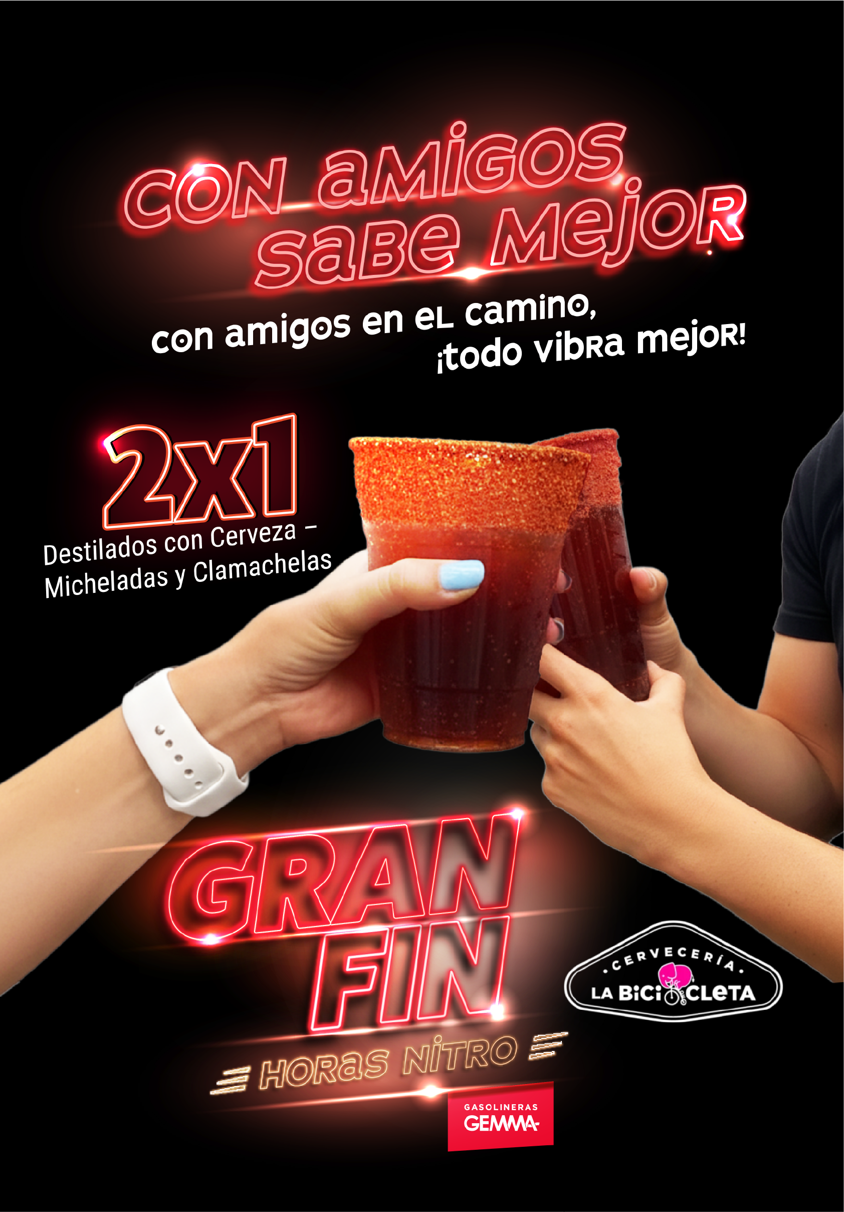 Promoción "2x1 en Destilados con Cerveza - Micheladas y Clamachelas" Bici de Cleta x Misión GEMMA Gasolineras GEMMA, a través de su programa de recompensas Misión GEMMA, y en colaboración con Bici de Cleta, presentan una promoción exclusiva disponible únicamente en la sucursal ubicada en Av. Juárez, Puebla. 1. Vigencia. La promoción será válida del viernes 14 al sábado 30 de noviembre de 2025, o hasta agotar existencias. 2.Mecánica. Los usuarios podrán canjear GRATUITAMENTE esta recompensa a través del Catálogo de Misión GEMMA, recibiendo un folio único que deberá presentarse en caja al momento del consumo. Para hacer válida la promoción, el participante deberá mencionar y presentar el código de promoción "GEMMA 2x1", junto con su folio correspondiente. Cada folio otorga el beneficio de un 2x1 en destilados con cerveza (aplica para productos como Micheladas, Clamachelas y bebidas preparadas dentro de la categoría participante). La promoción es válida para consumo en sucursal, no aplica para servicio a domicilio ni pedidos para llevar. 3. Restricciones. Promoción no acumulable con otras ofertas, descuentos o cortesías vigentes. Se podrán canjear máximo dos (2) folios por consumo o ticket. No aplica en combos, botellas completas ni bebidas fuera de la categoría "Destilados con cerveza". Promoción no canjeable por dinero en efectivo ni por otro producto o servicio. Los folios deberán presentarse en formato físico o digital legible, y serán validados al momento de su uso. Folios únicos, personales e intransferibles. Bici de Cleta y Misión GEMMA se reservan el derecho de rechazar cualquier folio alterado, duplicado o ilegible. 4. Consideraciones adicionales. La vigencia no podrá extenderse bajo ningún motivo. El consumo deberá realizarse en una sola visita. Cualquier situación no prevista en estos términos será resuelta por el equipo organizador de Misión GEMMA y Bici de Cleta. Al hacer uso del beneficio, el participante acepta en su totalidad los presentes términos y condiciones. 5. Contacto. Para dudas o aclaraciones sobre la dinámica, comunícate a través del canal oficial de WhatsApp de Misión GEMMA: 222 676 0280.